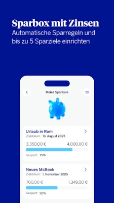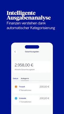 Behalte mühelos den Überblick über deine Finanzen und optimiere dein Sparpotenzial. Das integrierte Multibanking der BBVA ermöglicht dir, Kontostände und Transaktionen all deiner Konten und Karten zentral zu überprüfen. Dank automatischer Kategorisierung und intelligenter Analyse siehst du auf einen Blick, wohin dein Geld fließt. Nutze die digitale Sparbox, um bis zu fünf individuelle Sparziele zu definieren und zu erreichen. Profitiere dabei von attraktiven Zinsen auf dein Girokontoguthaben und sichere dir mit flexiblem Festgeld weitere Renditechancen, jederzeit kündbar. Deine Sicherheit ist jederzeit gewährleistet, auch durch den Diskreten Modus für deine Kontodaten.