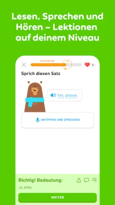 Tauchen Sie ein in die Welt der Sprachen mit Duolingo, der bahnbrechenden Plattform, die von erfahrenen Linguisten konzipiert wurde, um Millionen Menschen weltweit zu befähigen. Ob Sie von fließenden Gesprächen auf Reisen träumen, Ihre beruflichen Horizonte erweitern, akademische Erfolge sichern oder einfach Ihr Gehirn auf unterhaltsame Weise fordern möchten – Duolingo ist Ihr Schlüssel zu authentischer Kommunikation. Wir bereiten Sie darauf vor, sich selbstbewusst in Spanisch, Französisch, Chinesisch, Italienisch, Deutsch, Englisch und unzähligen weiteren Sprachen auszudrücken.