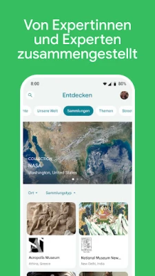Tauchen Sie ein in ein unvergleichliches Universum der Kunst und Kultur mit Google Arts & Culture. Entdecken Sie die reiche Vielfalt von über 2.000 kulturellen Institutionen aus 80 Ländern, direkt an Ihren Fingerspitzen. Von den dramatischen Wendepunkten der Geschichte bis zu den erhabenen Meisterwerken der Kunst und den tiefsten Geheimnissen unseres Planeten – diese Anwendung öffnet Tore zu Wissen und Inspiration, die die Welt zu bieten hat. Erleben Sie Geschichte, bedeutende Persönlichkeiten und die Wunder unserer Zivilisation in einer völlig neuen Dimension.