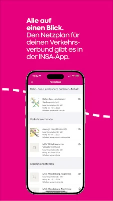 Plane deine Fahrten in Sachsen-Anhalt mühelos mit INSA. Die App bietet Echtzeit-Fahrpläne für Magdeburg, Halle und das gesamte Bundesland. Finde schnell die besten Verbindungen, kaufe Tickets direkt und nutze smarte Favoriten für reibungslose Reisen durch Sachsen-Anhalt.