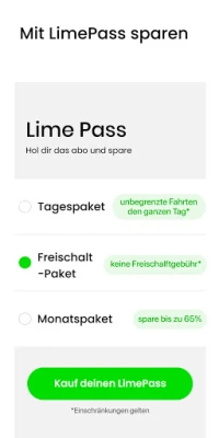 Erleben Sie die Stadt aus einer frischen Perspektive und genießen Sie die Freiheit, die Lime bietet. Wir legen größten Wert auf eine sichere Gemeinschaft und verantwortungsbewusstes Fahren. Jede Fahrt mit Lime ist eine Einladung, die Verkehrsregeln zu respektieren, Radwege zu nutzen und die Fahrzeuge rücksichtsvoll abzustellen, um ein harmonisches Miteinander im urbanen Raum zu gewährleisten. Ihre Sicherheit und das Wohl der Allgemeinheit sind unsere oberste Priorität.