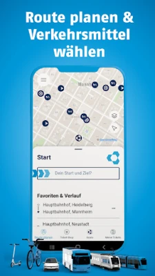 Die myVRN-App ist Ihr zentraler Navigator für die gesamte Mobilität im Verkehrsverbund Rhein-Neckar. Egal ob Sie Busse, Bahnen des Nah-, Regional- oder Fernverkehrs nutzen, auf Sharing-Angebote wie Stadtmobil, VRNnextbike oder dott setzen, oder die flexiblen Bedarfsverkehre wie VRNflexline bevorzugen – myVRN findet stets die optimale Route und präsentiert Ihnen die intelligentesten Kombinationen der verfügbaren Verkehrsmittel. Geben Sie einfach Start und Ziel ein, und die myVRN-App kümmert sich um den Rest, sodass Sie entspannt und pünktlich ankommen.