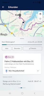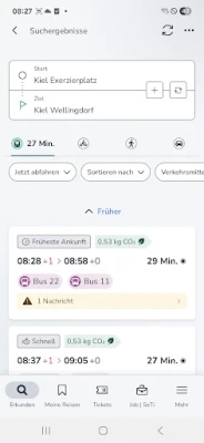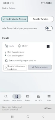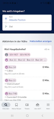NAH SH sorgt zudem für volle Transparenz bei den Kosten und der Reisezuverlässigkeit. Direkt bei Ihren Verbindungsvorschlägen sehen Sie detaillierte Tarifinformationen und Vorschläge für die günstigsten Fahrkartenoptionen für Ihre Strecke. Verlassen Sie sich auf Echtzeitdaten, die Ihnen sofort anzeigen, ob Ihr Zug oder Bus pünktlich ist, und ermöglichen es Ihnen, flexibel auf mögliche Verspätungen zu reagieren. Aktivieren Sie die Push-Benachrichtigungen, um bei Störungen auf Ihrer Linie umgehend informiert zu werden. Für maximale Effizienz können Sie häufig genutzte Start- und Zielorte als Favoriten in "Meine Adressen" speichern, um zukünftige Routen noch schneller abzurufen und Ihre Pendelzeiten zu optimieren.