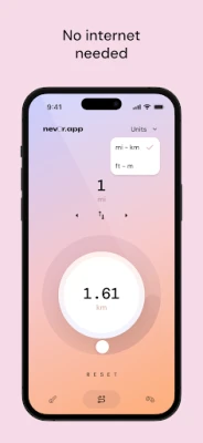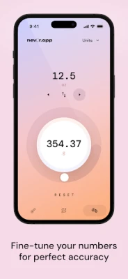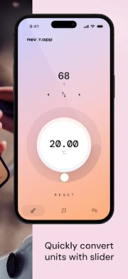Die intuitive Bedienung von UnitMate steht im Vordergrund. Wandeln Sie wesentliche Größen wie Temperatur, Distanz und Gewicht in Sekundenschnelle um – einfach durch präzises Gleiten über den Regler. Benötigen Sie eine höhere Genauigkeit? Die Pfeiltasten ermöglichen eine feine Abstimmung der Zahlen für exakte Ergebnisse. Ein einfacher Fingertipp genügt, um sofort zwischen metrischen und imperialen Einheiten zu wechseln, ideal für Reisende, die unterwegs schnelle Antworten benötigen. Das minimalistische Design der App gewährleistet dabei eine klare Übersicht und konzentriert sich auf das Wesentliche: schnelle, präzise Umrechnungen ohne Ablenkung.